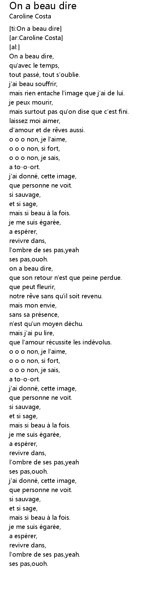 | [00:33.05] | mais surtout pas qu' on dise que c' est fini. |