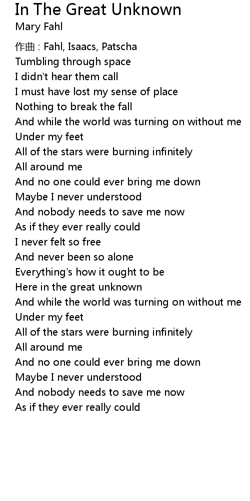| Here in the great unknown | |