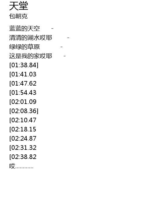 | [03:15.46][01:47.62] | 洁白的羊群哎耶 - |
