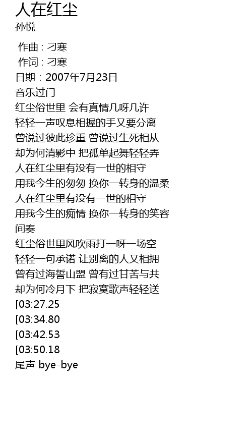 | [03:11.77][03:42.53] | 人在红尘里有没有一世的相守 |