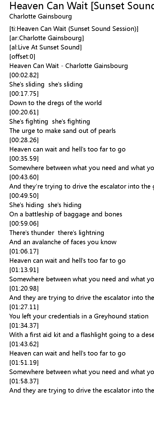 [ti:Heaven Can Wait (Sunset Sound Session)] |