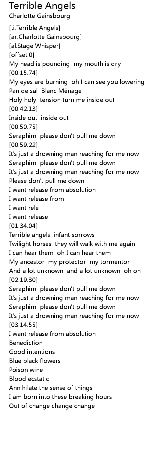 | [01:00.28] | It's just a drowning man reaching for me now |