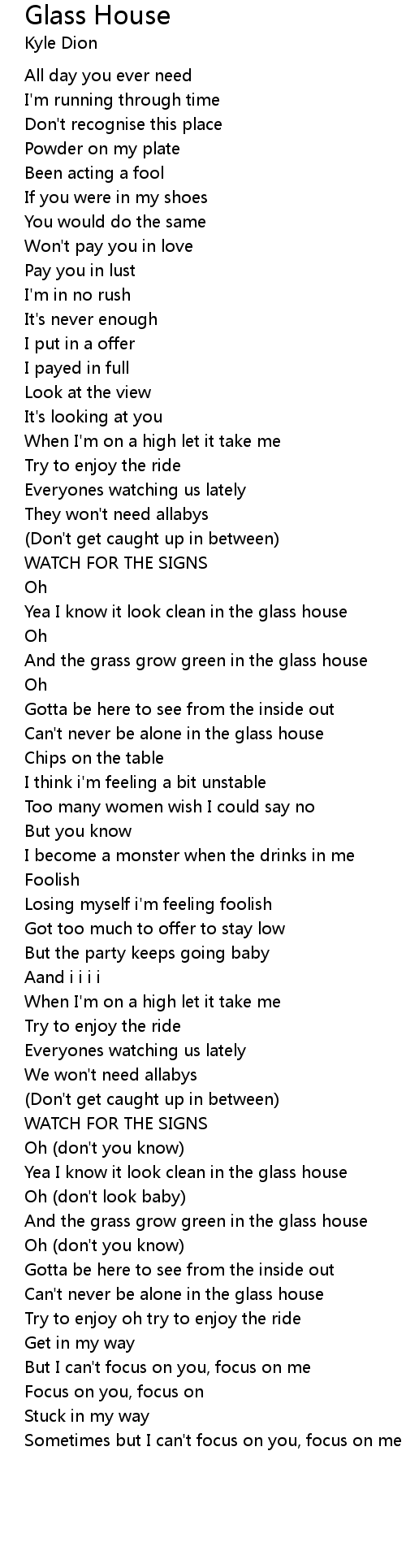 | [00:55.94] | Yea I know it look clean in the glass house |