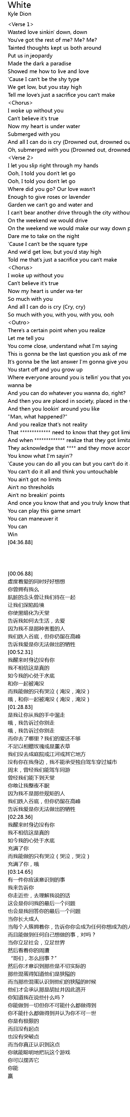 | [01:22.18] | Oh, submerged with you (Drowned out, drowned) |