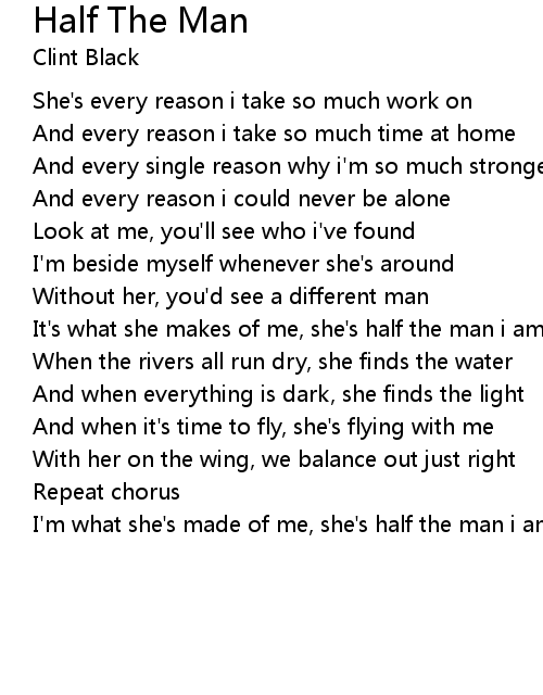 I'm what she's made of me, she's half the man i am |