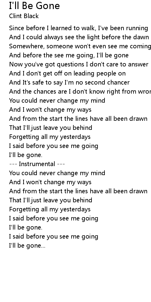 And before the see me going, I'll be gone |