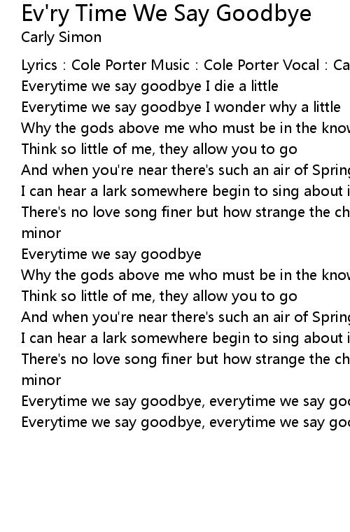 | Everytime we say goodbye I wonder why a little | |