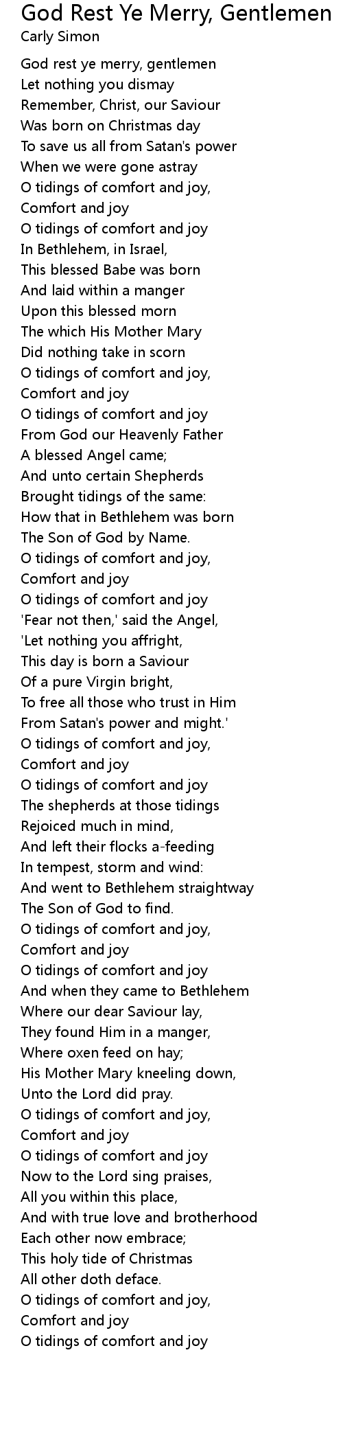 O tidings of comfort and joy |