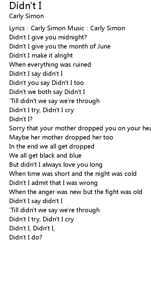 | Lyrics:Carly Simon Music:Carly Simon | |