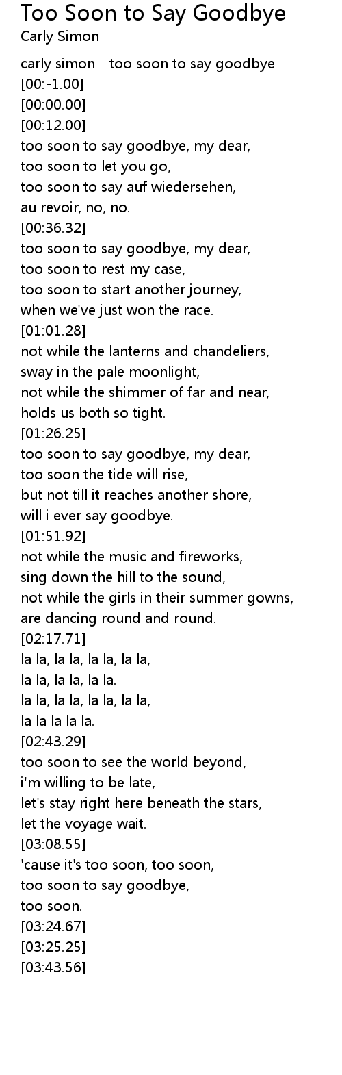 too soon to say goodbye, |