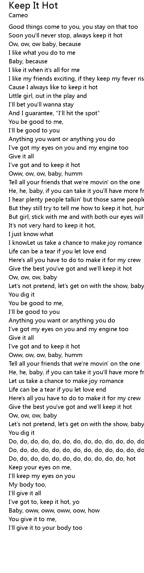 | Soon you'll never stop, always keep it hot | |