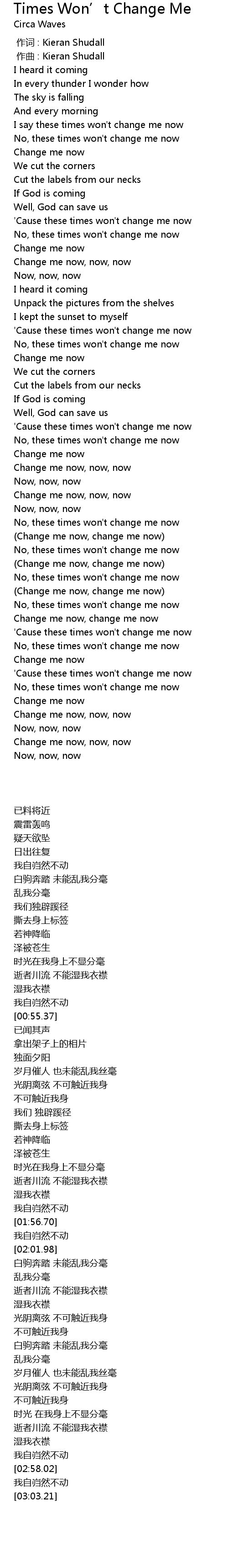 | [02:55.22] | Change me now, now, now |