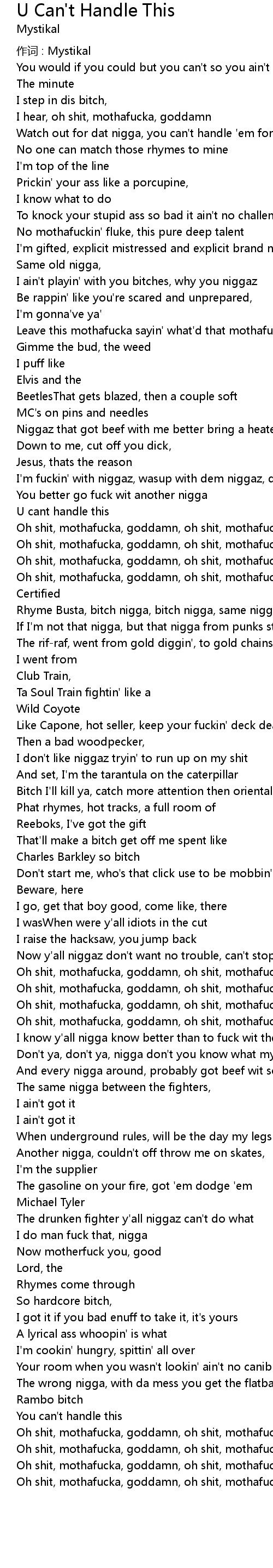 | Oh shit, mothafucka, goddamn, oh shit, mothafucka, goddamn | |
