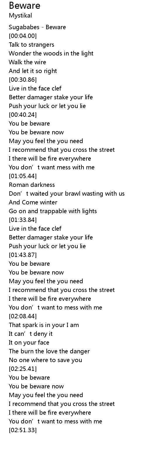 | [00:41.13] | You be beware |