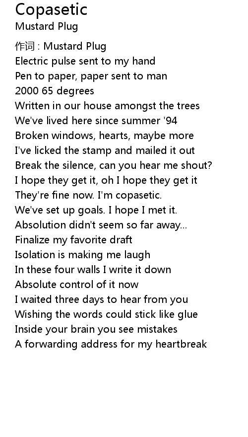 | 作词 : Mustard Plug | |