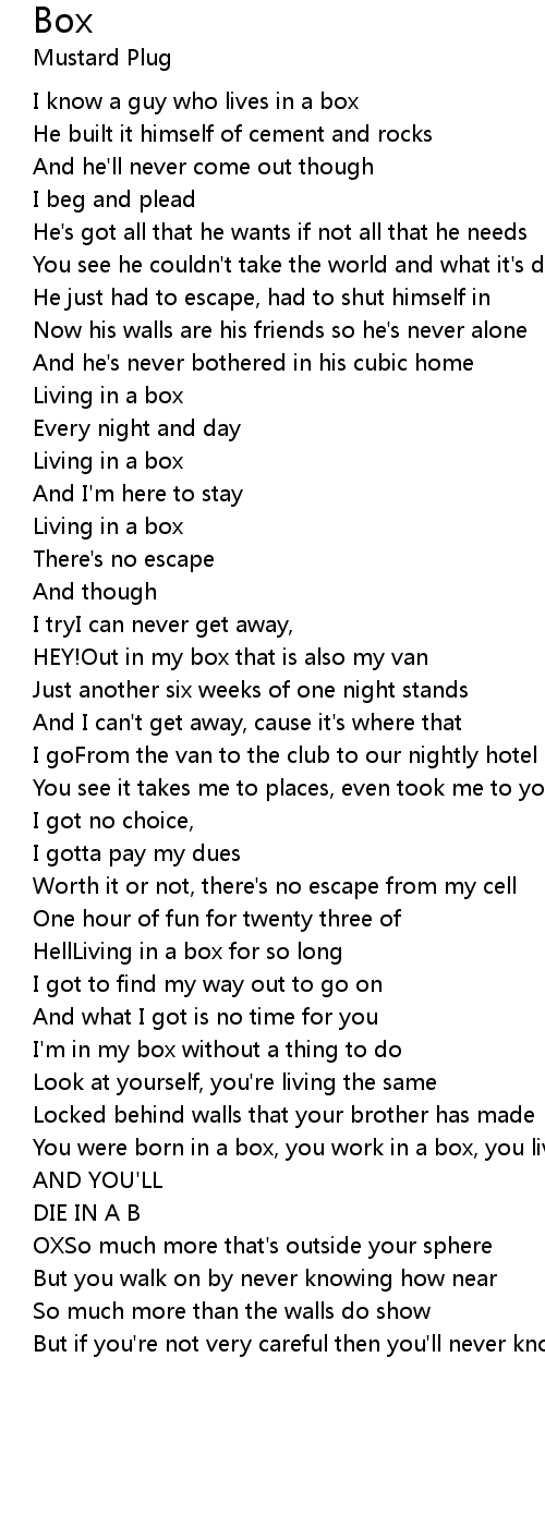 I'm in my box without a thing to do |