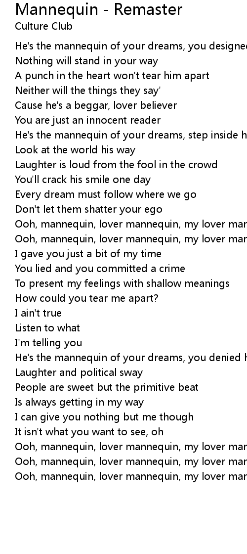 Ooh, mannequin, lover mannequin, my lover mannequin, whoa |
