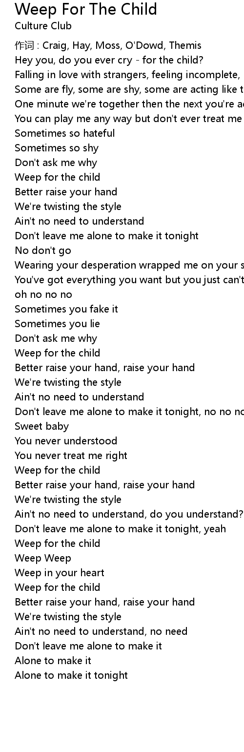 | 作词 : Craig, Hay, Moss, O'Dowd, Themis | |