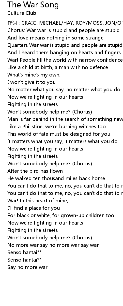 | 作词 : CRAIG, MICHAEL/HAY, ROY/MOSS, JON/O`DOWD, GEORGE | |