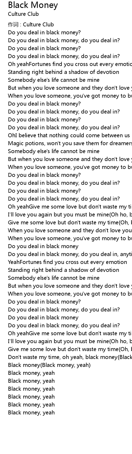| I' ll love you again but you must be mine Oh ho, black money, yeah | |