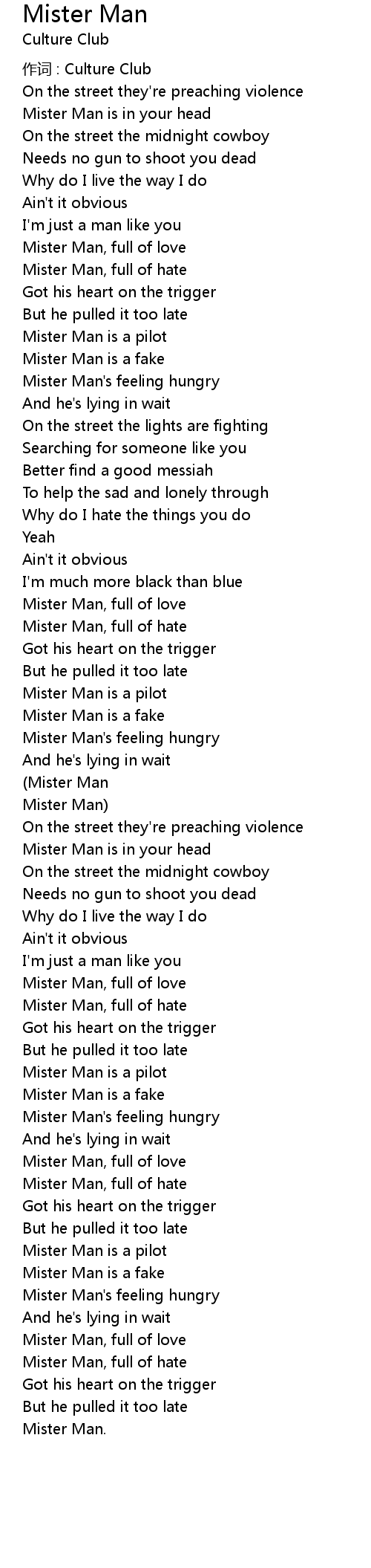 | 作词 : Culture Club | |