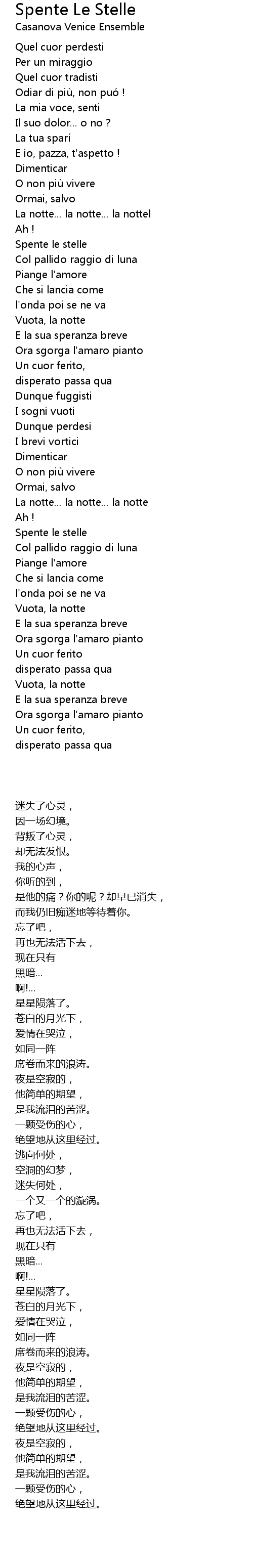 | Song | Spente Le Stelle |