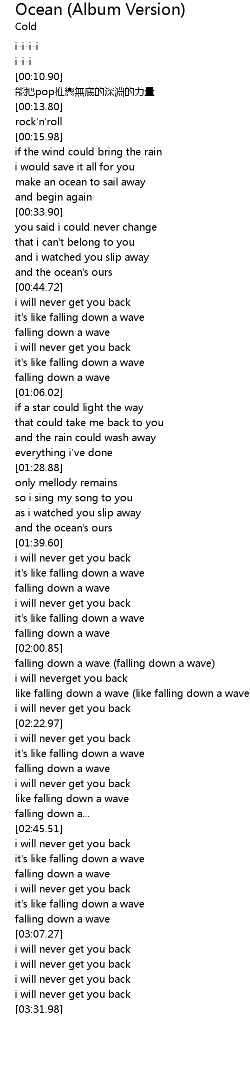 | [02:02.43] | falling down a wave (falling down a wave) |