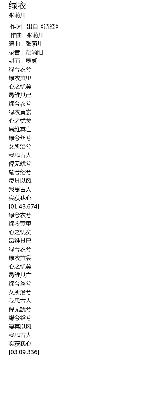 | [02:33.752] | 绿兮丝兮 |
