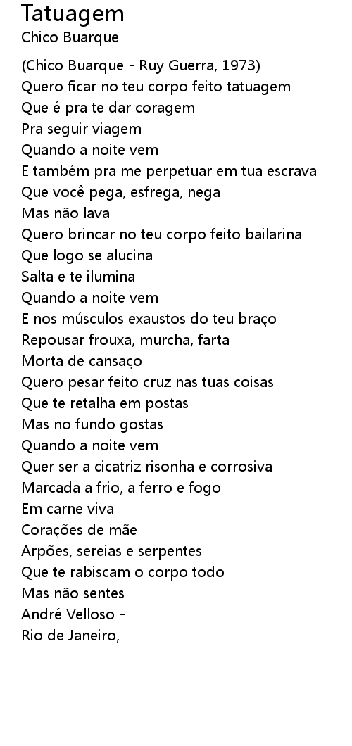 | Quero ficar no teu corpo feito tatuagem | |