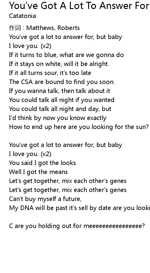 | Song | You've Got A Lot To Answer For |