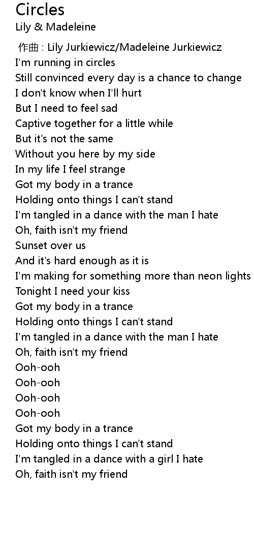 | [00:19.35] | I' m running in circles |
