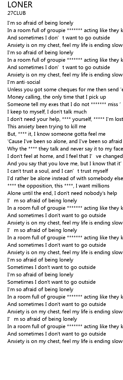 | [02:27.77] | Anxiety is on my chest, feel my life is ending slowly |