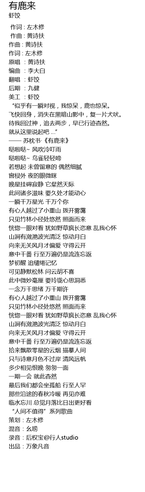 | [00:15.20] | —— 苏枕书·《有鹿来》 |