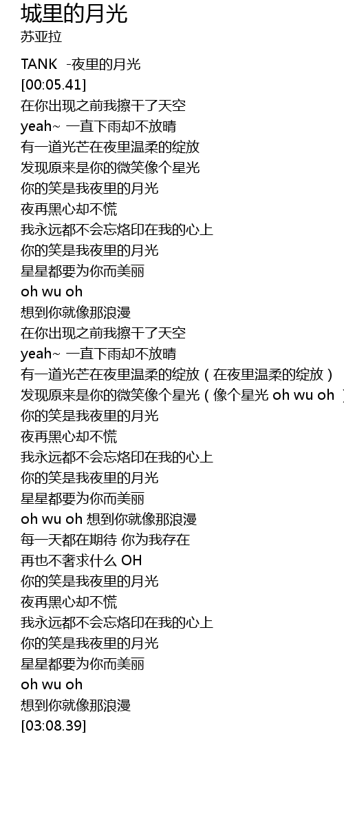| [00:02.64] | TANK yè lǐ de yuè guāng |