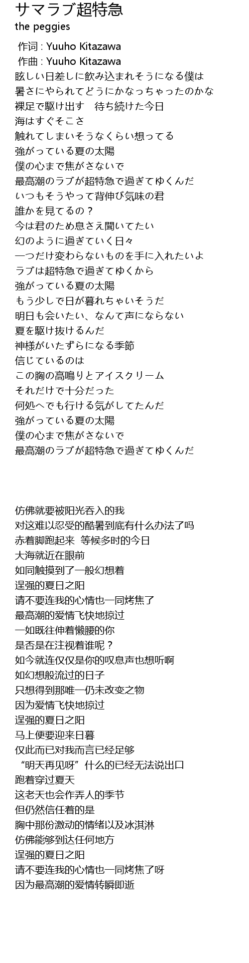| [00:00.000] | zuo ci : Yuuho Kitazawa |