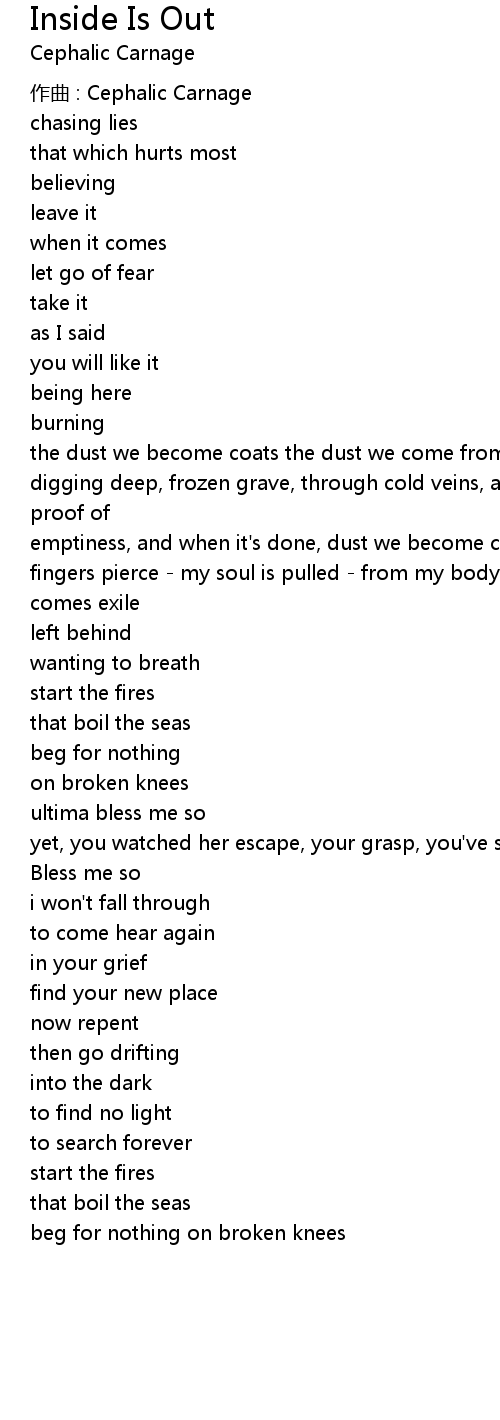 | fingers pierce my soul is pulled from my body is cast down from heaven comes exile | |