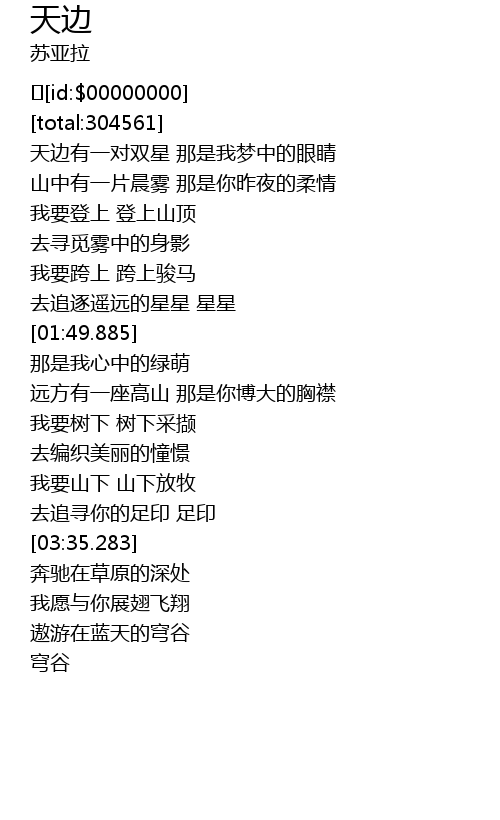 | [00:35.578] | 天边有一对双星 那是我梦中的眼睛 |