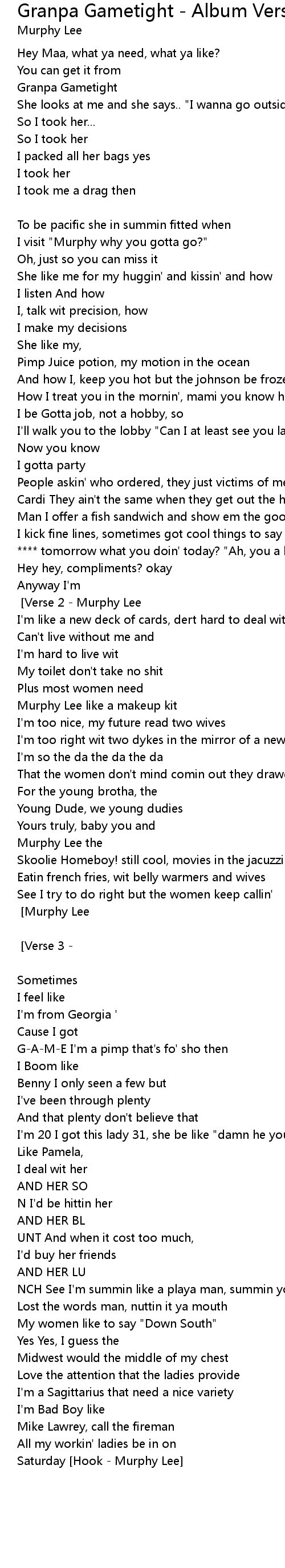 Murphy Lee, you wanna plaay? [Hook - Murphy Lee] [Verse 2 - Murphy Lee] |