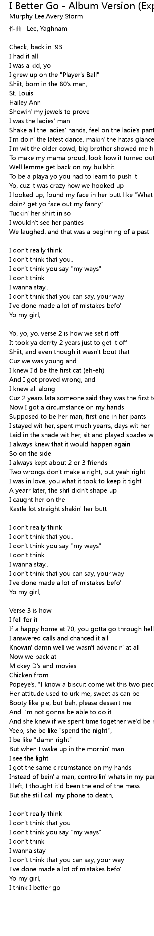 | I think I better go.. [Verse 3: Murphy Lee] | |