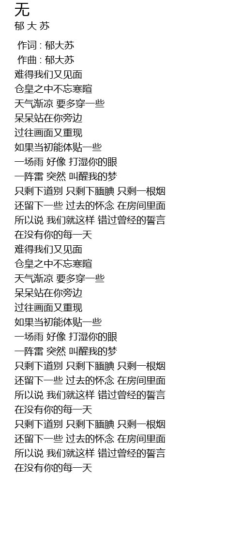 | [00:00.000] | 作词 : 郁大苏 |