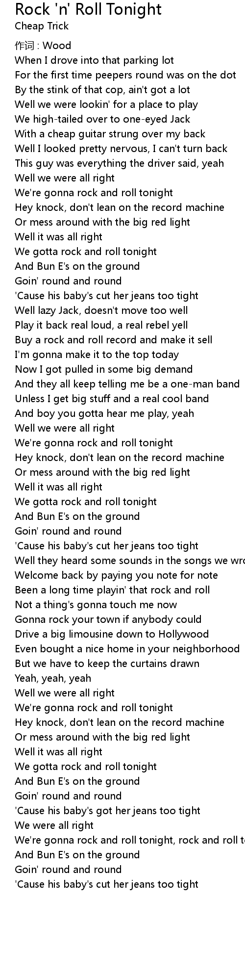 | We' re gonna rock and roll tonight, rock and roll tonight | |