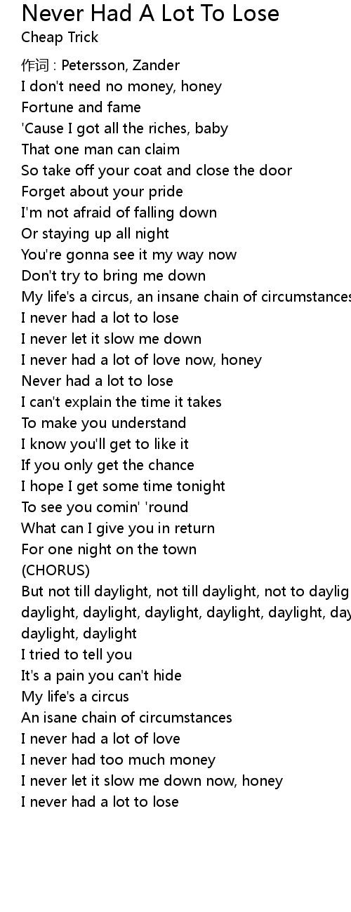 | Song | Never Had A Lot To Lose |