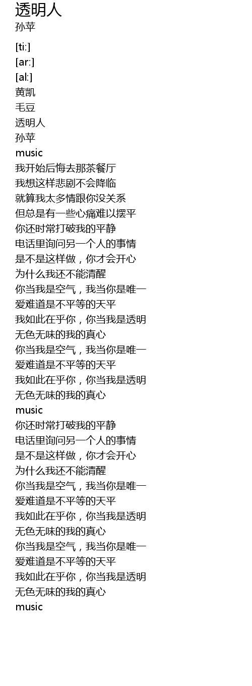 | [03:33.37] | 我如此在乎你,你当我是透明 |