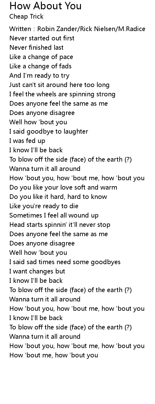 | Written:Robin Zander/Rick Nielsen/M.Radice | |
