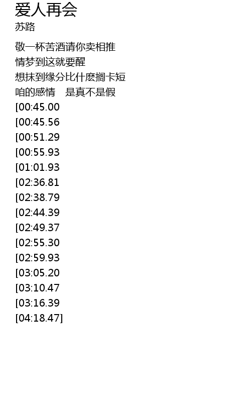 | [03:28.92][02:38.79][01:09.20] | ài rén zài huì yào gē zài xiāng féng kǔ wú jī huì |