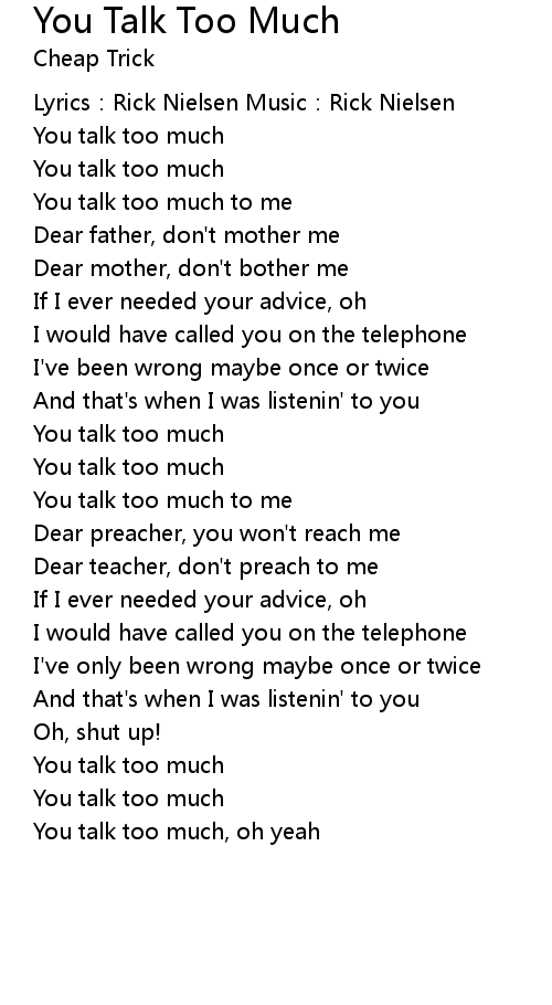 | Lyrics:Rick Nielsen Music:Rick Nielsen | |