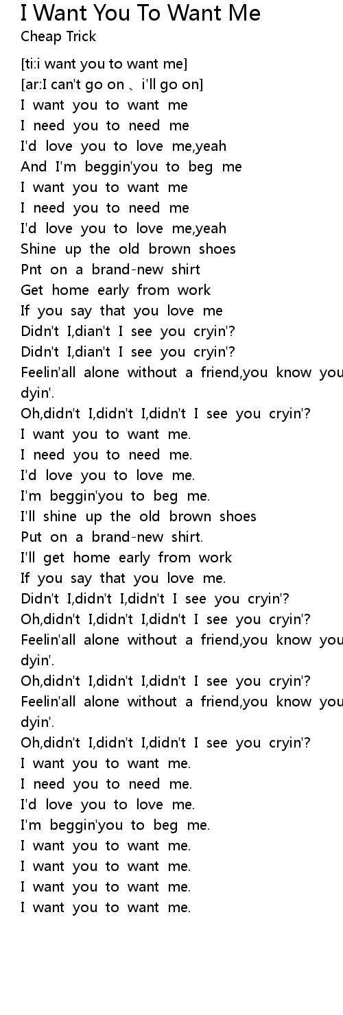| [01:54.576] | Oh, didn' t I, didn' t I, didn' t I see you cryin'? |