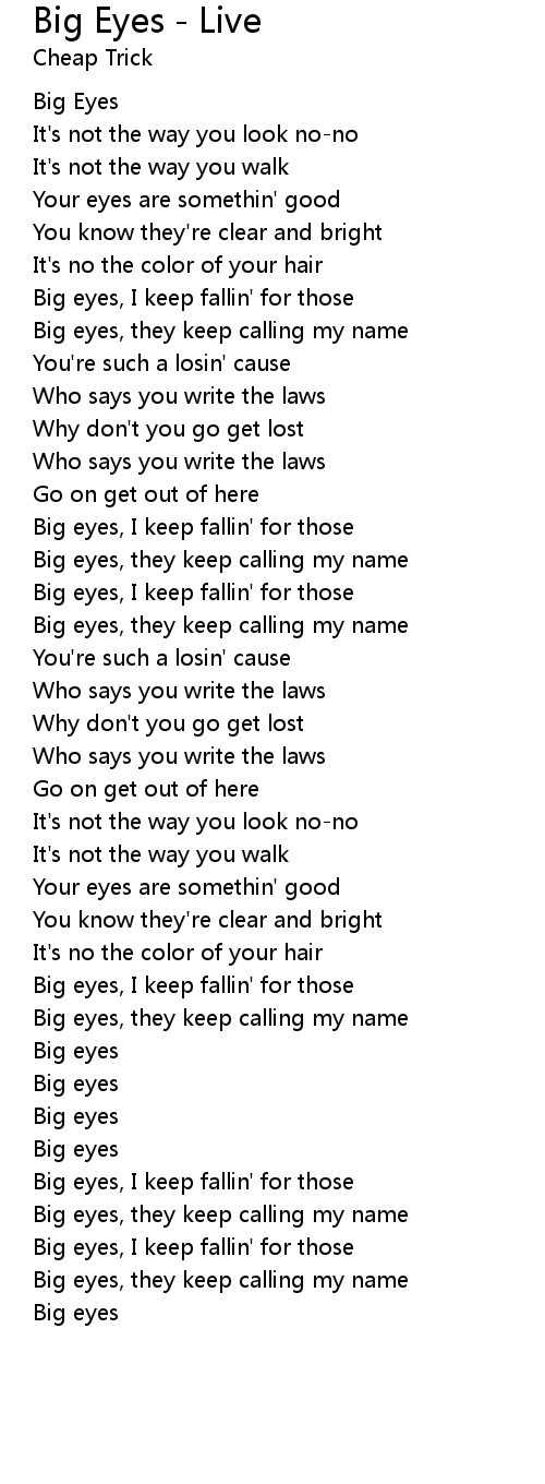 Big eyes, they keep calling my name |