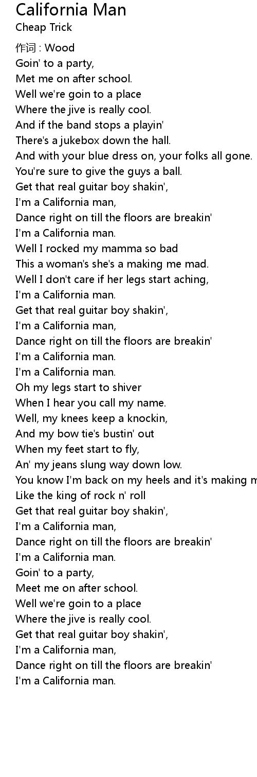 | I'm a California man, | |