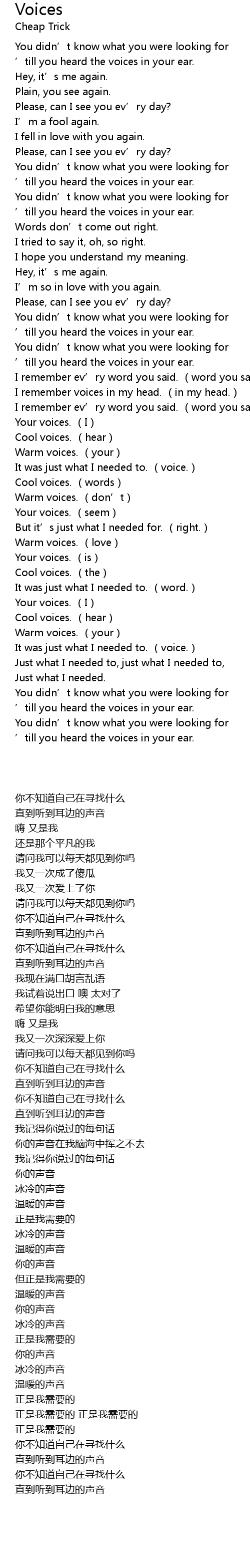 | [03:22.75] | Your voices. (is) |